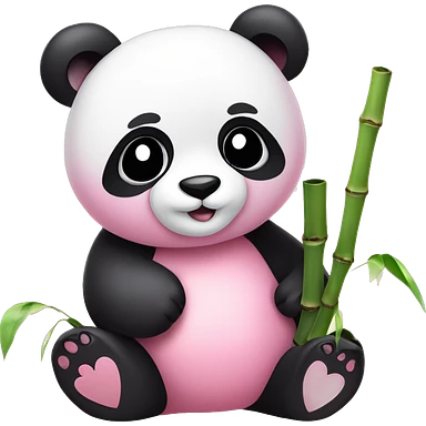 Panda "A pastel pink panda with glowing, soft fur, heart-shaped eye patches, and tiny sparkling bamboo leaves floating nearby." emoji