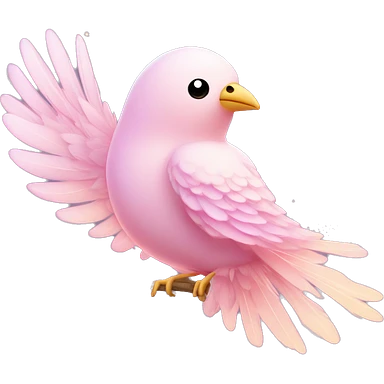 Bird "A pastel pink bird with glowing, delicate feathers, a shimmering beak, and a magical trail of sparkles as it flutters its wings." emoji