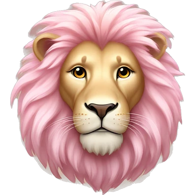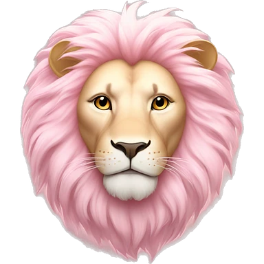 Lion "A pastel pink lion with a glowing, fluffy mane, shimmering eyes, and golden sparkles radiating from its majestic form." emoji