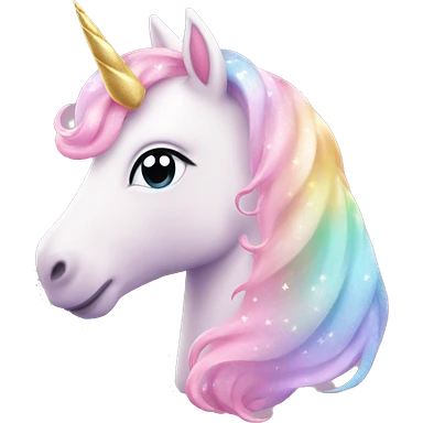 Unicorn "A pastel pink unicorn with a shimme-ring, multicolored mane, a glowing horn, and sparkling stars scattered across its magical body." emoji
