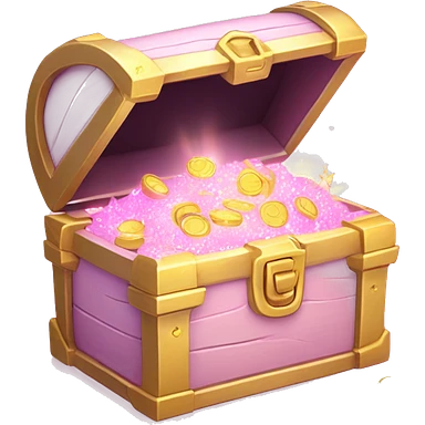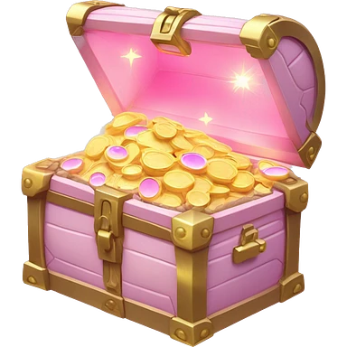 Pastel Pink Treasure Chest "A pastel pink treasure chest with glowing edges, sparkling golden coins spilling out, and a magical light emitting from inside." emoji