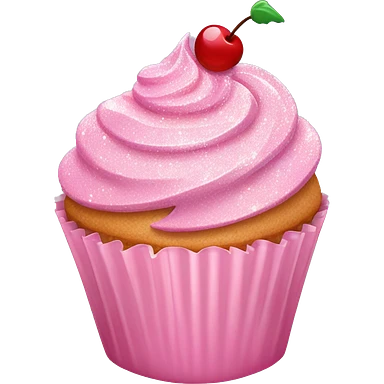 Pastel Pink Cupcake "A pastel pink cupcake with glittery frosting, a glowing cherry on top, and floating sparkles around the wrapper." emoji