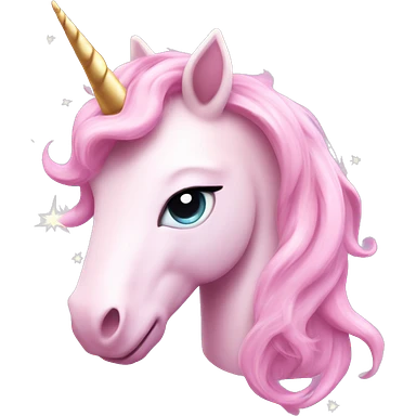 Unicorn Emoji "A pastel pink unicorn head with a flowing, shiny mane, glowing horn, and sparkling stars around its magical presence." emoji