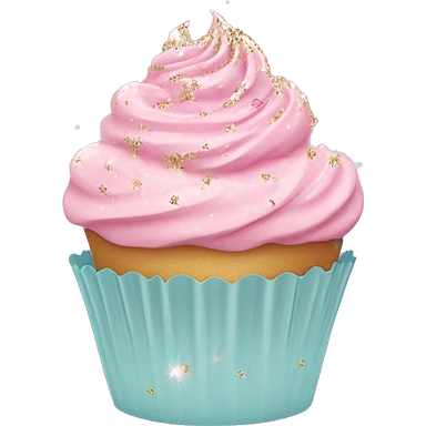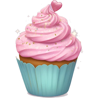 Cupcake Emoji "A pastel pink cupcake with swirled frosting, topped with tiny glittery hearts and a magical sparkle hovering above." emoji