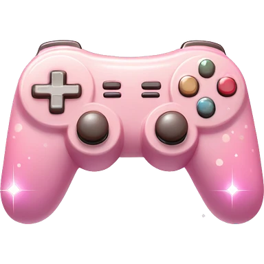 Game Controller Emoji "A pastel pink gaming controller with glossy buttons, glowing joysticks, and tiny sparkles floating around, emitting a soft magical aura." emoji