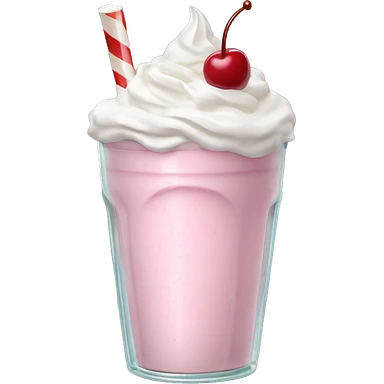 Milkshake Emoji "A pastel pink milkshake in a glass cup, topped with whipped cream, a cherry, and tiny glittery sprinkles floating above." emoji