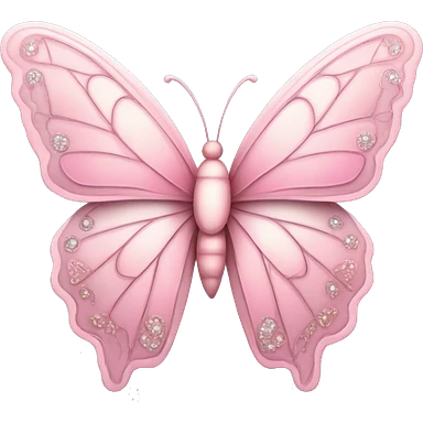 Butterfly Emoji "A graceful pastel pink butterfly with ornate, glowing wings decorated with intricate sparkling patterns and tiny heart shapes." emoji
