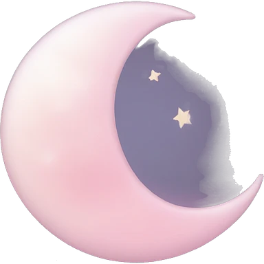 Moon Emoji "A crescent-shaped pastel pink moon with a shimmering glow, surrounded by twinkling stars and a soft cloud-like mist." emoji