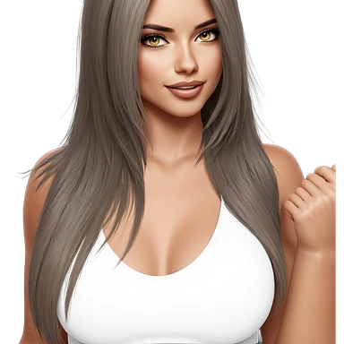 White girl with long brown hair and brown eyes emoji