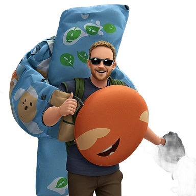 smiling boy outdoors with bag emoji