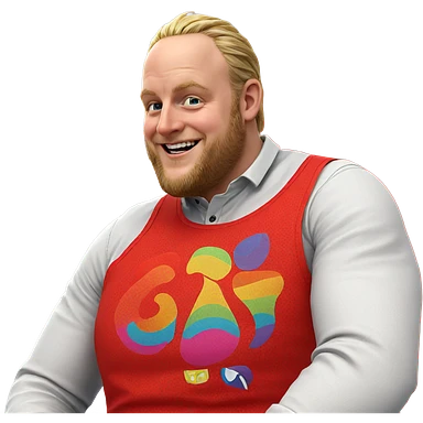 smiling blonde guy in vest emoji