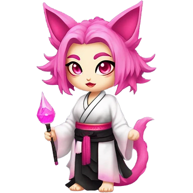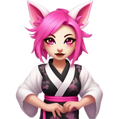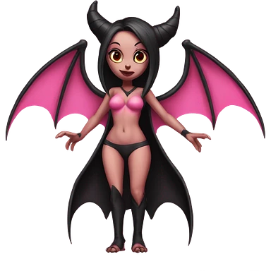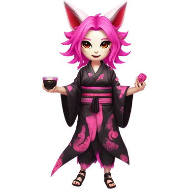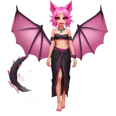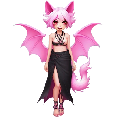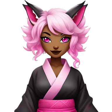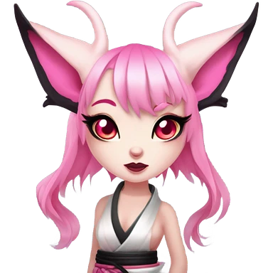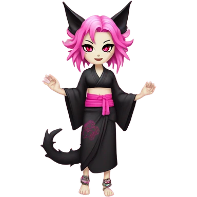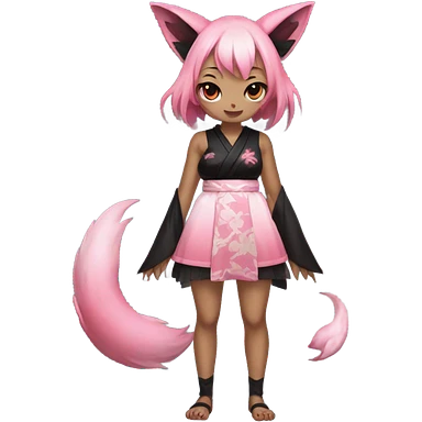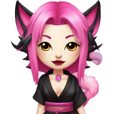Pink and black sucubus human kitsune girl in Japanese short dress in full body view emoji