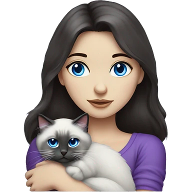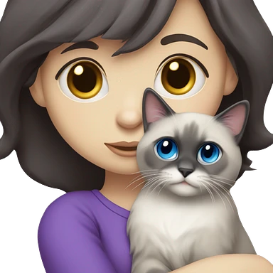 Dark-haired blue eyed girl wearing purple hugging blue colorpoint ragdoll cat emoji