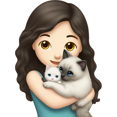 Dark-haired white girl hugging seal colorpoint ragdoll kitten emoji