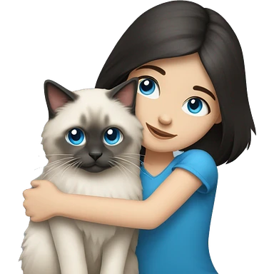 Dark-haired blue eyed girl hugging blue colorpoint ragdoll cat emoji