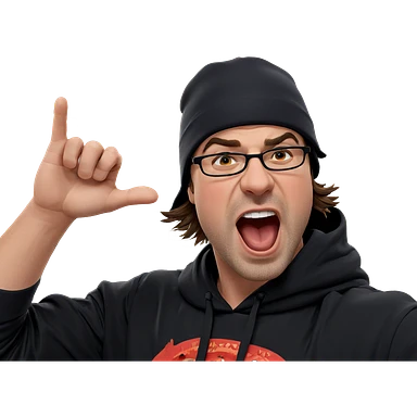 Man with glasses and beanie making peace sign emoji