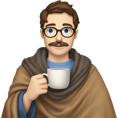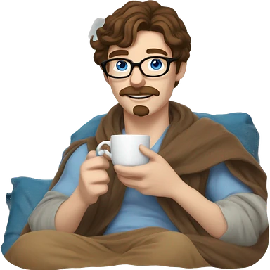 brown hair blue eyes moustache and Soul patch pale guy with glasses drinking tea with blanket on emoji