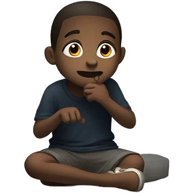A kid eating up a shadow emoji