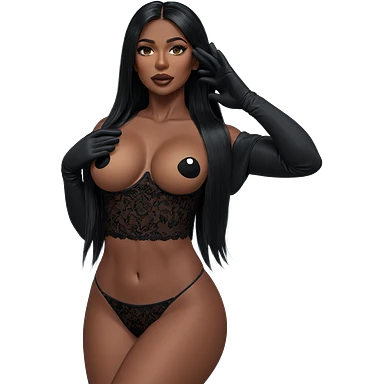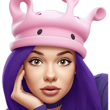 Dark Brown haired, almond skinned girl,with a blue nosed pit bull emoji