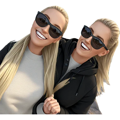 Dark blonde girl with blue eyes hugs a racoon emoji