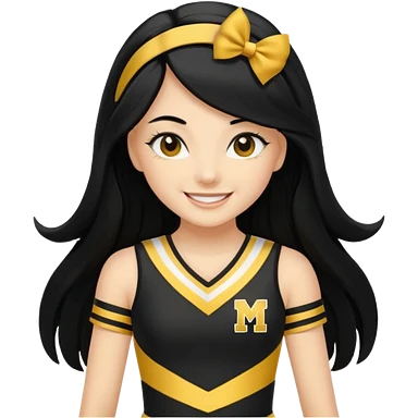 Girl Cheerleader with black hair in black and gold uniform emoji