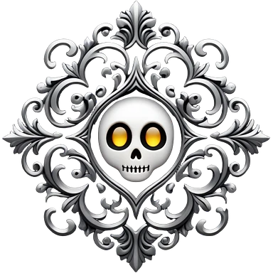 a gothic skull with silver filigree, moody and elegant, dark gothic style emoji