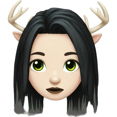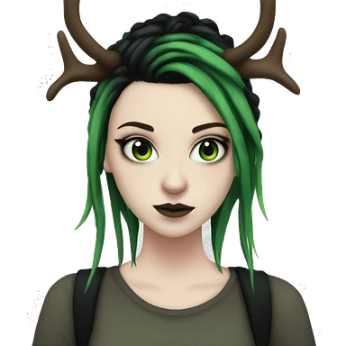 Emo girl, pale skin, green eyes, black dread-locks, eyeliner, deer antlers emoji