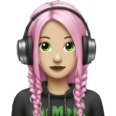 White skinned woman, green eyes, black dreadlocks, pink headphones, gothic, grunge, punk emoji