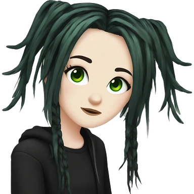 Emo girl, pale skin, green eyes, black dreads, bangs, black clothes, eyeliner, deer antlers emoji