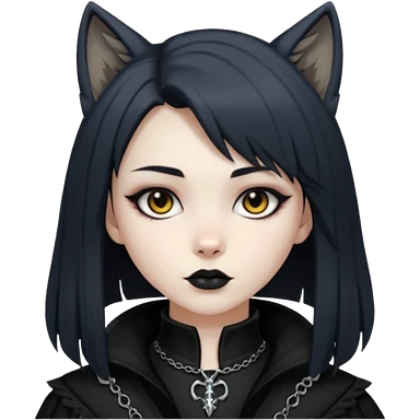 Make a girl with pale skin and dark straight hair with wolf haircut and wearing a gothic style clothes emoji