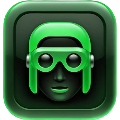 Matrix hacker with black sweat and green code glass reflects and in front of a computer emoji
