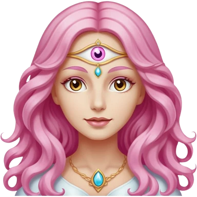 Pleiadian radiant glowing diva goddess woman female with third eye but light brown eyes and pink and white long wavy hair emoji