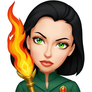 Mujer con traje de heroína negro y con fuego emoji