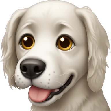 australian shepherd dog with blue eyes, a pink and brown nose, and a white and brown colored fur emoji