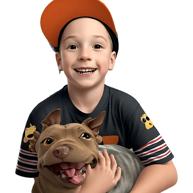 boy smiling with pet indoors emoji