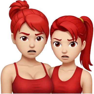 A red angry woman with really really big breasts, no clothes, ponytail hair, and some guy's really long penus between her breasts with some white cream on top of it, the girl and the guy are having sex, the girl is giving him a boobjob, and we see her from the guy's point of view emoji