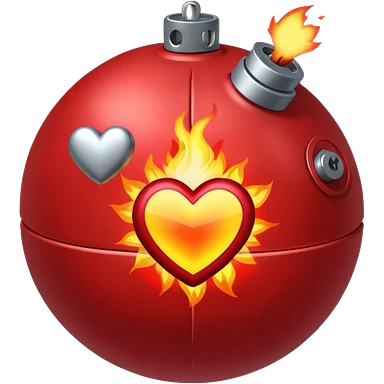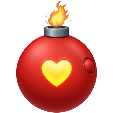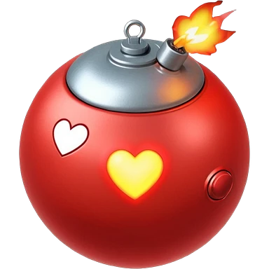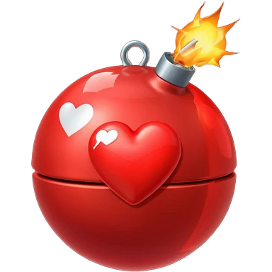 A spherical shaped bomb, red in colour, fuse burning with a heart. emoji