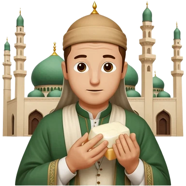 some guy eating 1kg of mozzarella, make it nepalese, more brown, slightly less brown, in a mosque, praying emoji