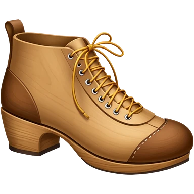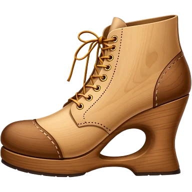 Un zapato de madera estilo Polonia . El zapato está tallado a mano. Pero de madera peo que no tenga cordón para desatar emoji