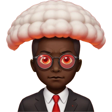 Демон в очках, позади него "ядерный гриб" emoji