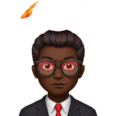 Демон в очках, позади него взрыв emoji