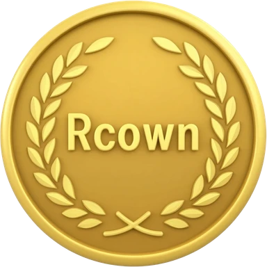 gold coin with "Rcrown" level in center and minimal laurel small emoji