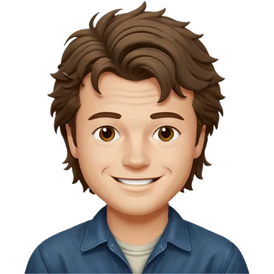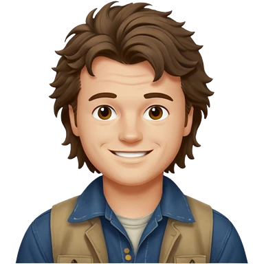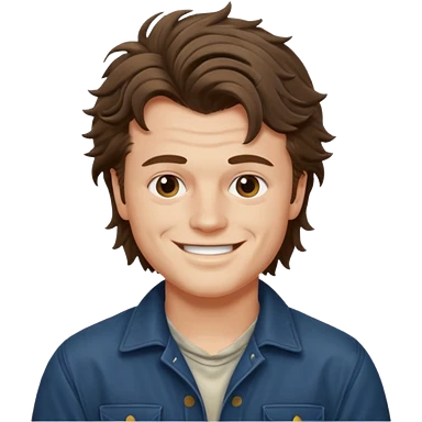 A pretty girl has blue eyes, her hair is brown long wavy hair, and wear green Hawkins cheerleader uniform emoji
