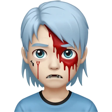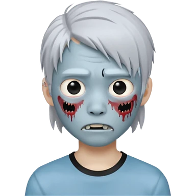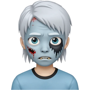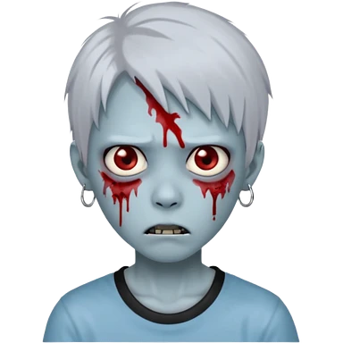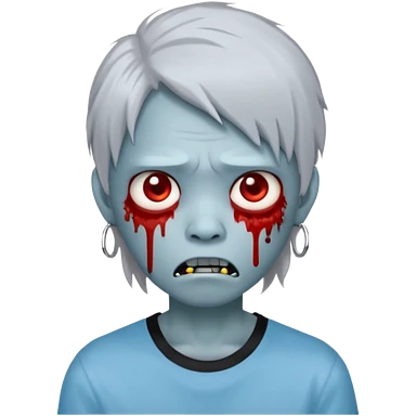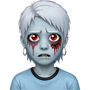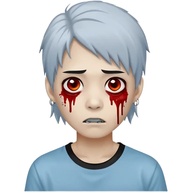 emoji-style avatar with very pale blue-grey zombie skin like , a young Asian face, and large eyes with blood tears. Give it white mullet-style hair, silver hoop earrings, and a simple black T-shirt. The expression should be neutral or slightly angry emoji