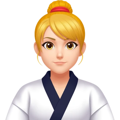 金髪で赤のゴムで髪を結っている空手着の女性 emoji