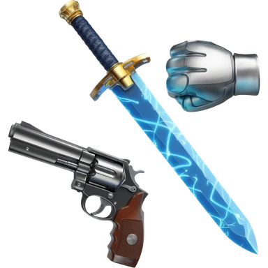 機械的な水色の電気を纏った剣と普通のメタリックなピストル emoji