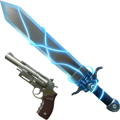 機械的な水色の電気を纏った剣と普通のメタリックな拳銃 emoji