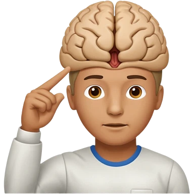A person pointing is his brain emoji