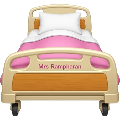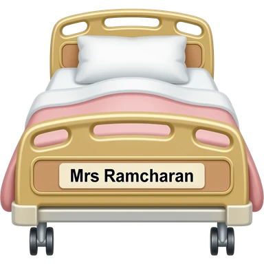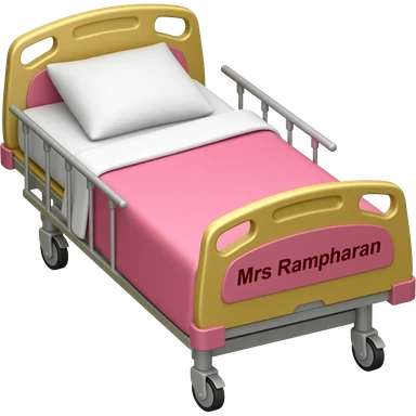 Pink and gold hospital bed with name Mrs Ramcharan emoji