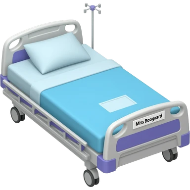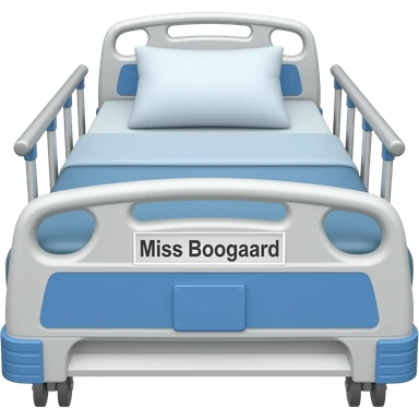 Blue and silver hospital bed with name Miss Boogaard emoji